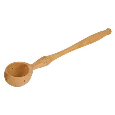 This tiny Salt Spoon is small enough to be kept in a salt pig. Made from solid wood with a lacquered finish, it also features a scoop at the end for holding salt.
